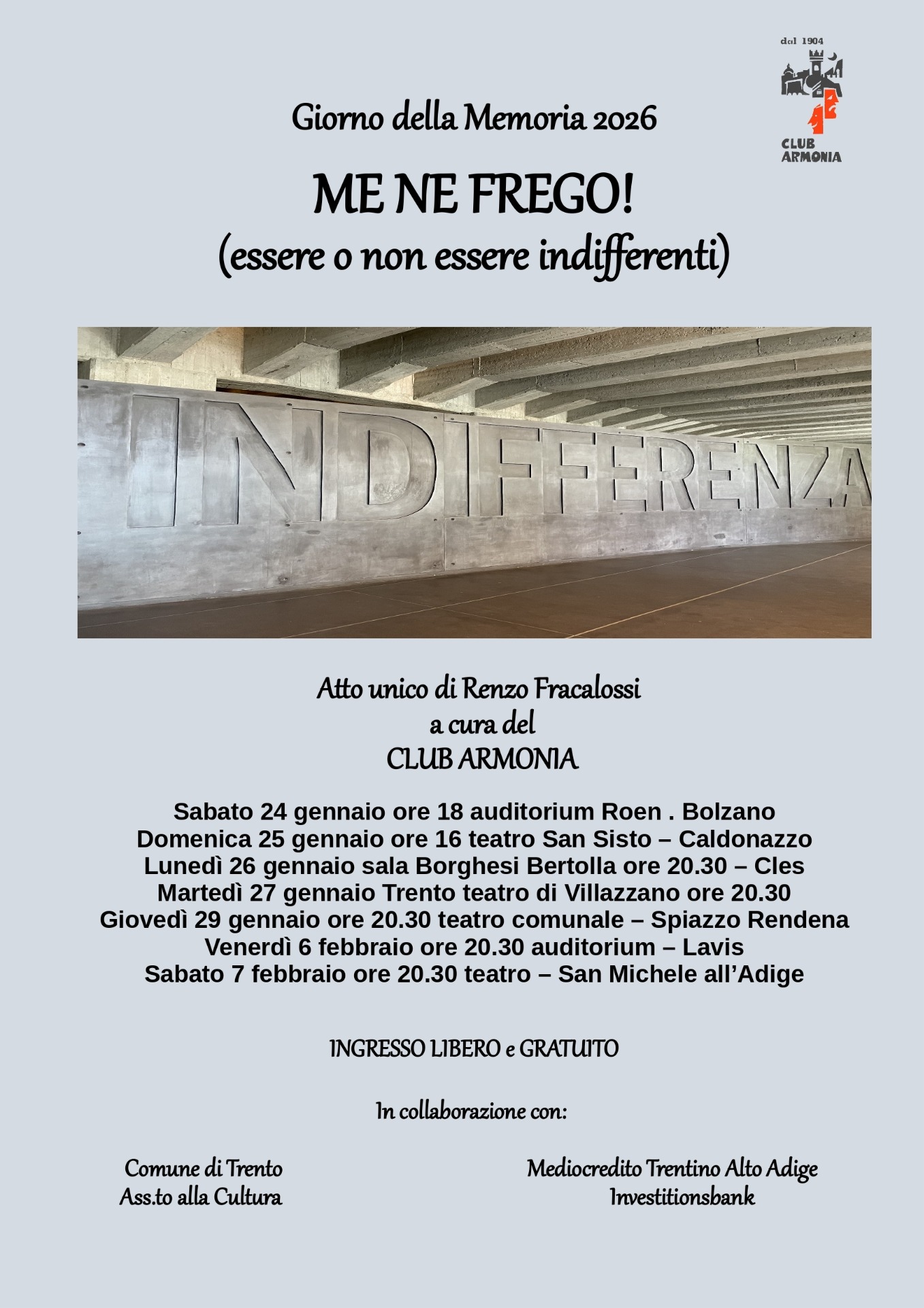 Lo ha capito perfettamente Liliana Segre quando si è battuta affinché questa parola campeggiasse all'ingresso del Museo della Shoah di Milano. E' l'indifferenza che sta entrando nei gangli più profondi dell'essere umano e che sembra renderci tutti impermeabili alla condivisione, alla solidarietà, alla reciprocità ed alla tolleranza, la vero protagonista degli anni che stiamo vivendo e che hanno un precedente straordinario, nella sua tragicità, proprio negli avvenimenti che sconvolsero l'Europa solo ottant'anni fa, attraverso l'odio fattosi concreto dentro le ideologie autoritarie, razziste, xenofobe ed antisemite di allora e che oggi paiono, talora, ritornare dentro il nostro quotidiano.